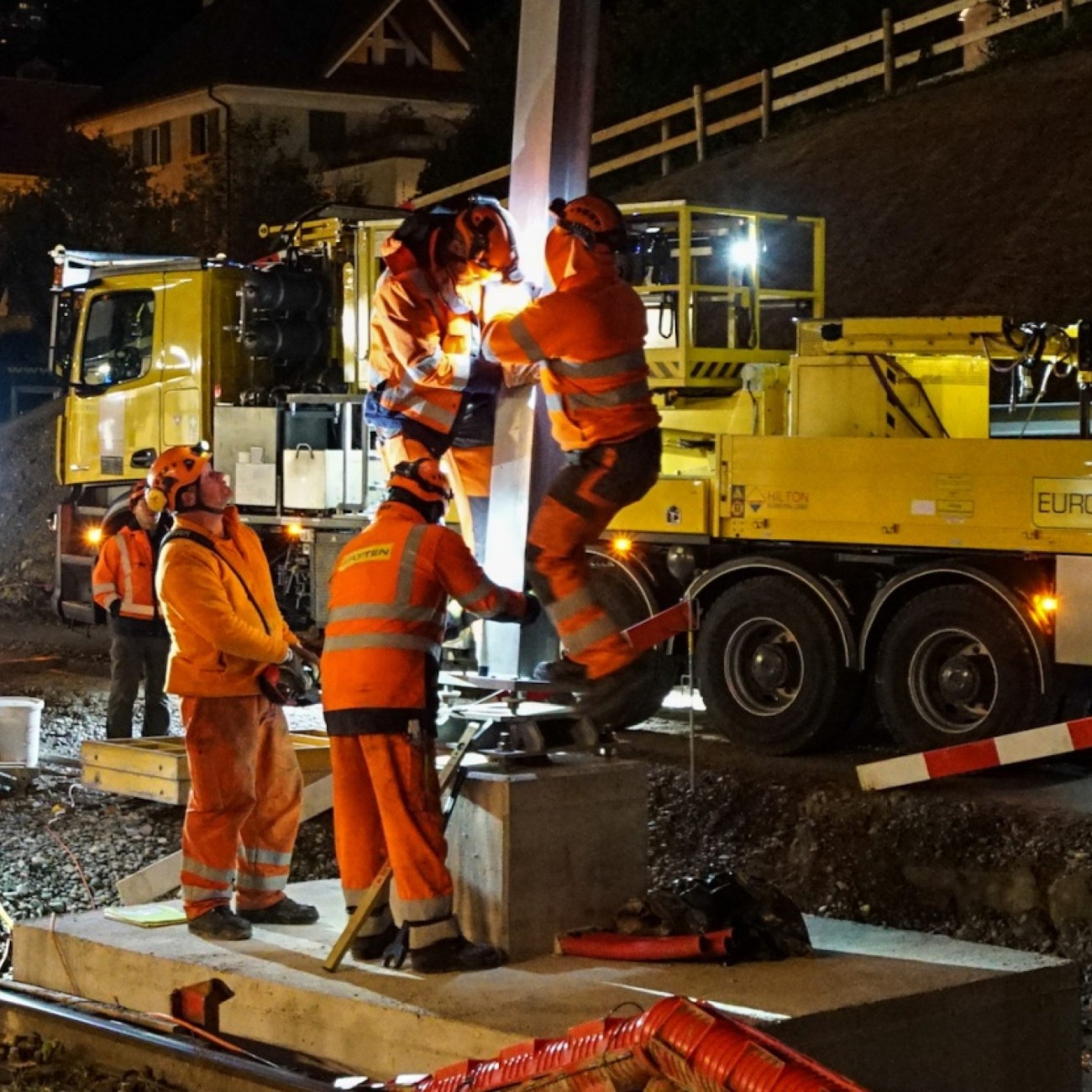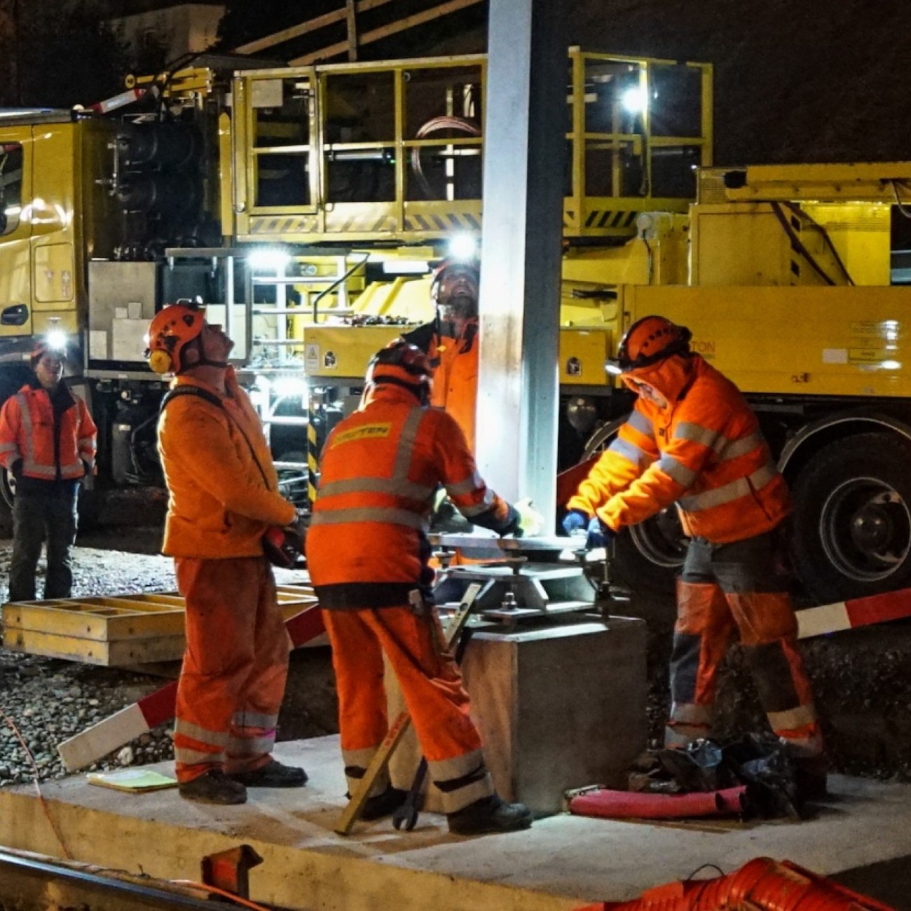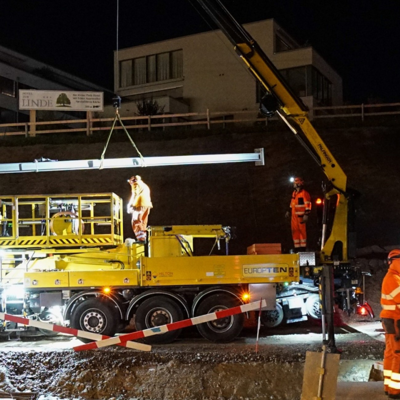 In der Nacht vom 10. auf den 11. Oktober wurden beim Bahnhof Teufen Fahrleitungsarbeiten vorgenommen.