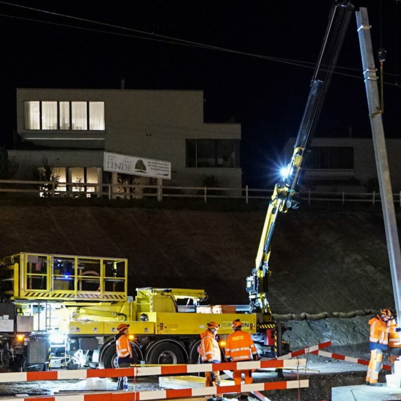 In der Nacht vom 10. auf den 11. Oktober wurden nun noch die Fahrleitungsarbeiten vorgenommen. Die geplanten Nachtarbeiten vom 14.-16. Oktober fallen aus. Weitere Nachtarbeiten sind zur Zeit nicht vorgesehen.