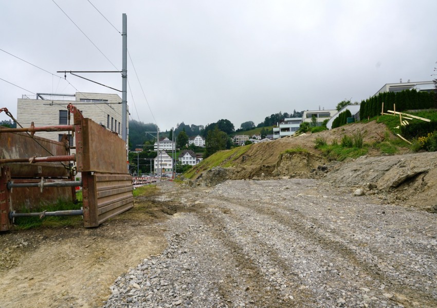Die Bauarbeiten für besagten Weg, der zwischen dem Bahnhof-Parkplatz und dem Technikgebäude der Appenzeller Bahnen (AB) verlaufen wird, haben mit dem Abtragen des Hanges bereits Anfang Juli begonnen. Laut Markus Bischof, Leiter Bau und Planung der Gemeinde Teufen, wird der Weg voraussichtlich Ende April 2020 fertiggestellt sein. Der neue «Verbindungsweg Ost» ist 140 Meter lang und 2.85 Meter breit. Beim Technikgebäude geht der neue Abschnitt in den bereits bestehenden Fussgängerweg über (bis zum Einlenker Landhaus). Obwohl sich die Gemeinde vehement für einen direkten Perronzugang vom Bahnhof-Parkplatz zum dritten Gleis eingesetzt hat, wird dieser nicht realisiert, da dieses Vorhaben vom BAV aus Sicherheitsgründen abgelehnt wurde.