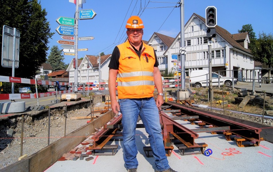 Beat Senti, Projektleiter Infrastruktur bei den Appenzeller Bahnen (AB), nimmt Stellung zu den Bautätigkeiten rund um die Teufener Bahnhofskreuzung.