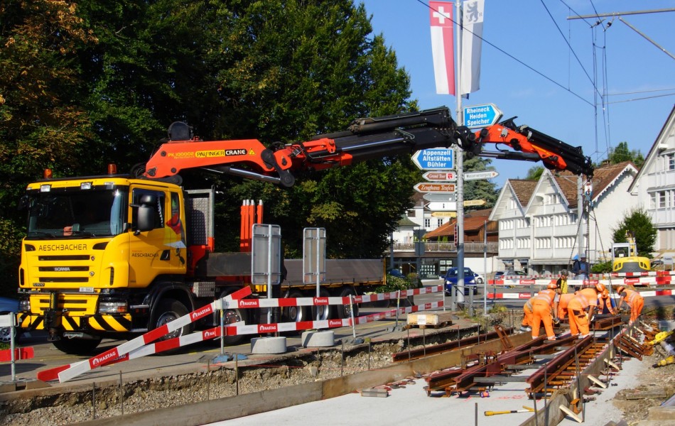 Bis Ende September bereiten die AB und das kantonale Tiefbauamt gemeinsam die Geleise, die Weiche, den Unterbau und die Elektroinstallationen rund um die Bahnhofkreuzung soweit vor, dass ab dem Fahrplanwechsel am 9. Dezember die «Tangos» im Bahnhof Teufen pünktlich kreuzen können. Damit das möglich ist, muss beispielsweise während der Totalsperre das AB-Kabeltrassee für das neue Stellwerk quer über die Kreuzung geführt werden. Diese Arbeiten obliegen den Appenzeller Bahnen. Für die neue Fundationsschicht bei der Weiche und den Geleisen ist das kantonale Tiefbauamt verantwortlich.